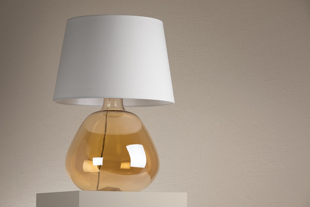 The Thea table lamp is bold yet understated glam. The plated champagne amber glass quietly glistens and is the perfect way to emanate warmth to any surface in your home.