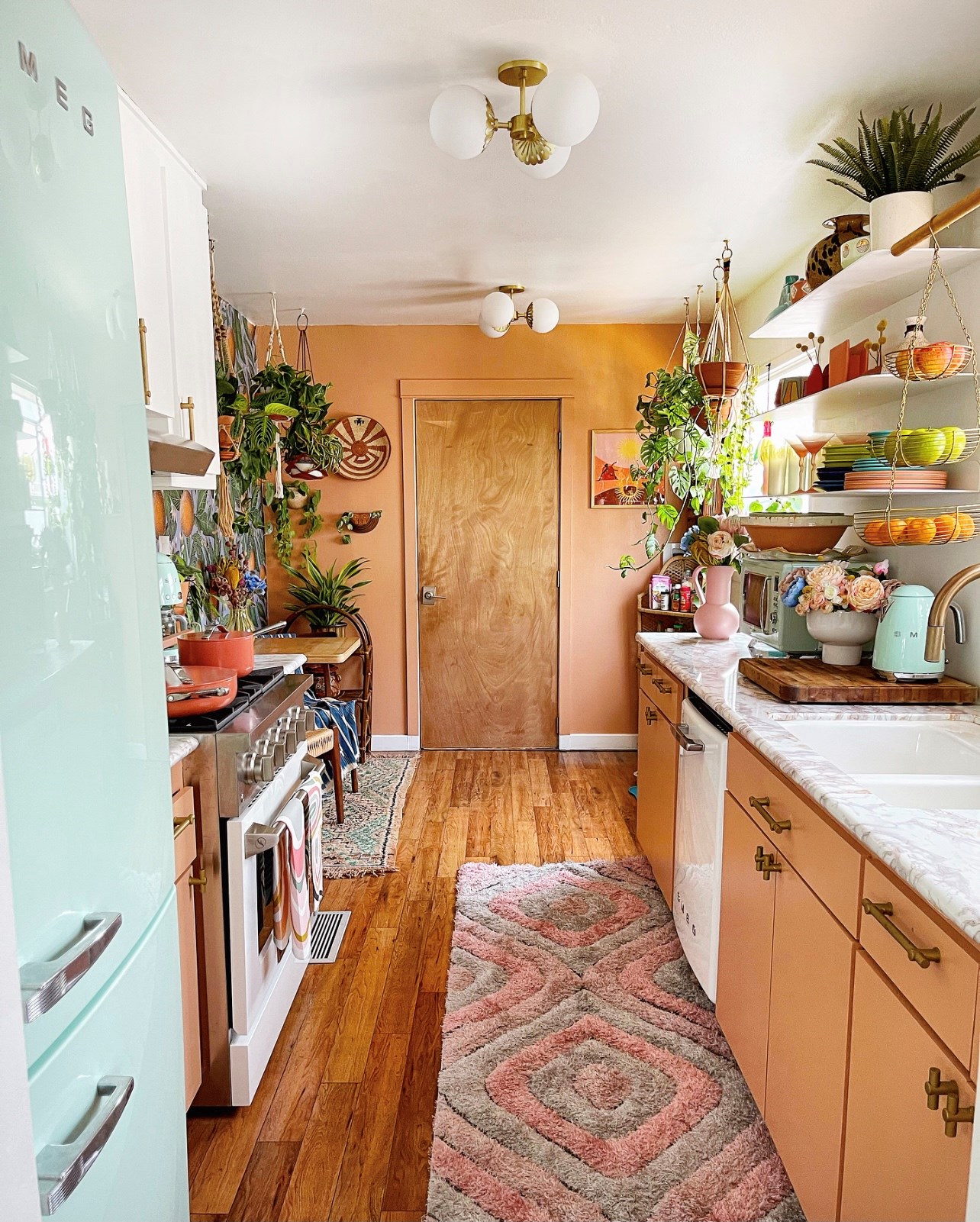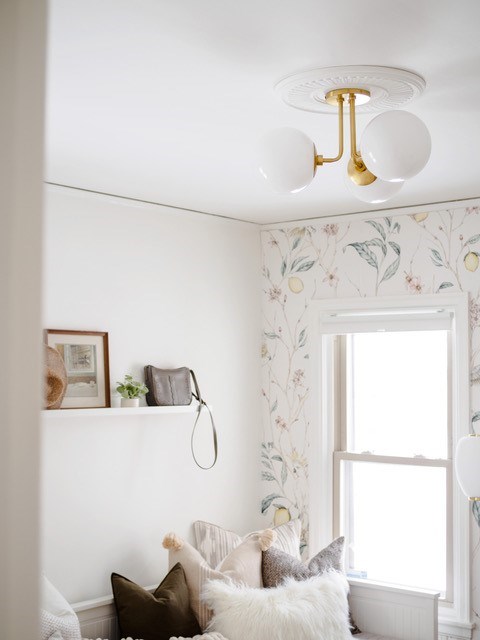 We can’t get enough of Katie Zamprioli’s eclectic kitchen. “I’ve gotten so many compliments on my Paige semi flush mount fixtures. The scalloped brass detail is exquisite and I love the frosted globes. They provide the perfect glow and ambiance!” - @candycoloredhome
