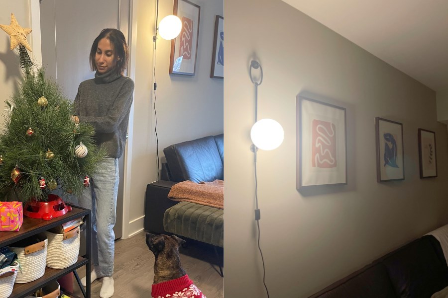 It's definitely my living room! It's where I like to unwind after work, wrap presents, and watch plenty of holiday movies & shows. My Gina wall sconce provides the perfect amount of ambient light without being overpowering.Â