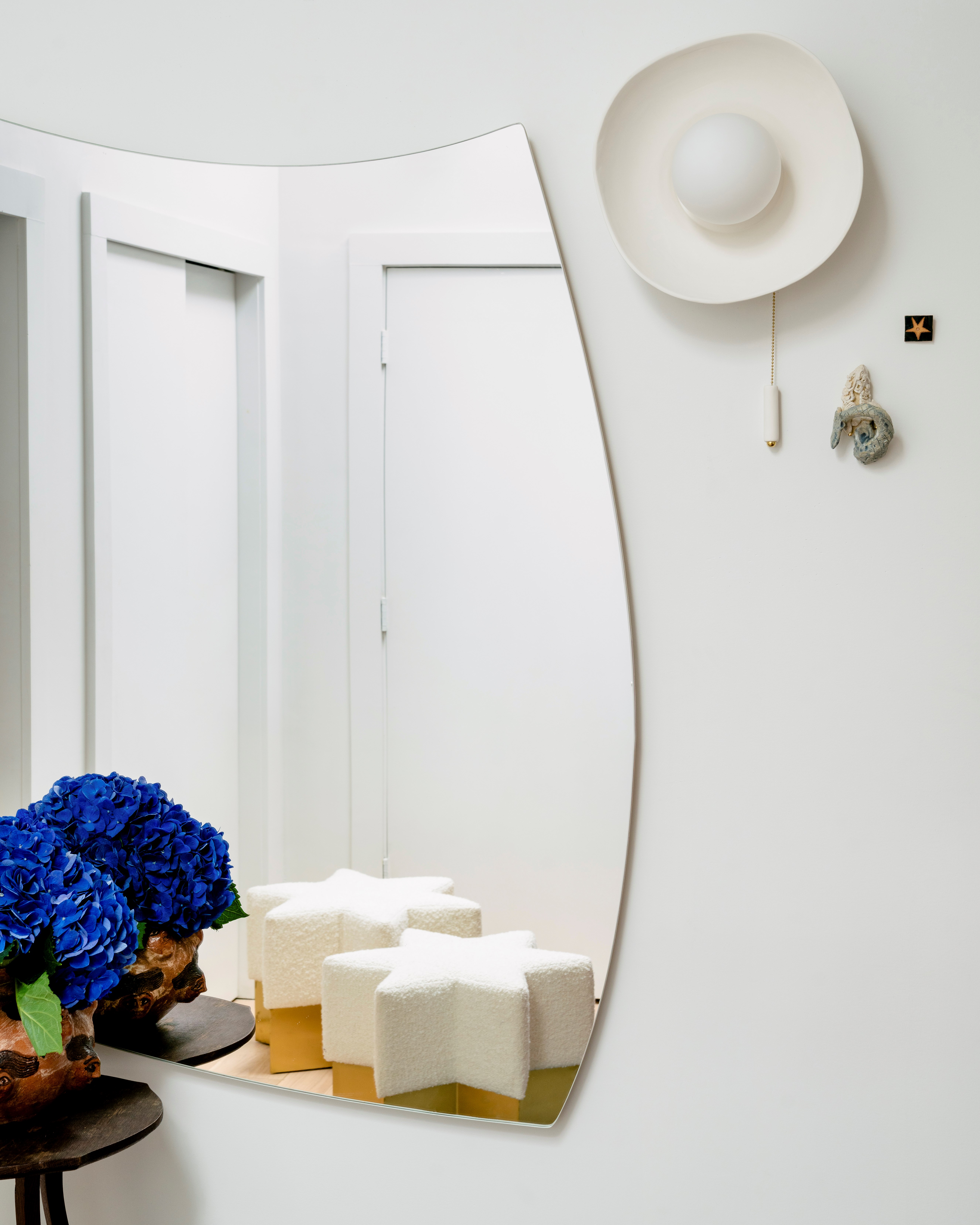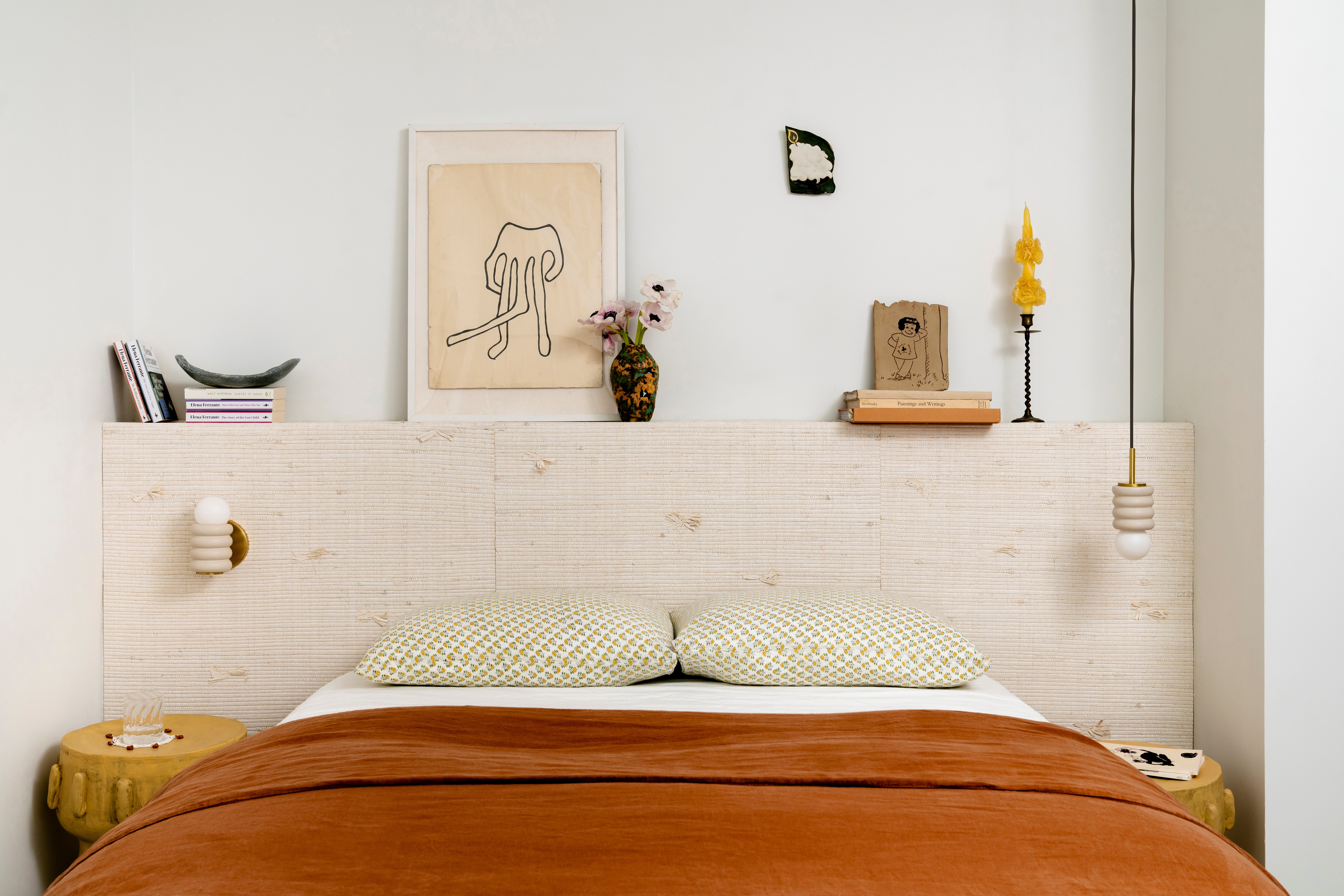 Looking to mix and match your bedside lighting without going too outside the box? Take a page from Eny's book by choosing a sconce and a pendant from the same collection - in this case the Bibi family, for a comfortable statement that is still unique and fun.