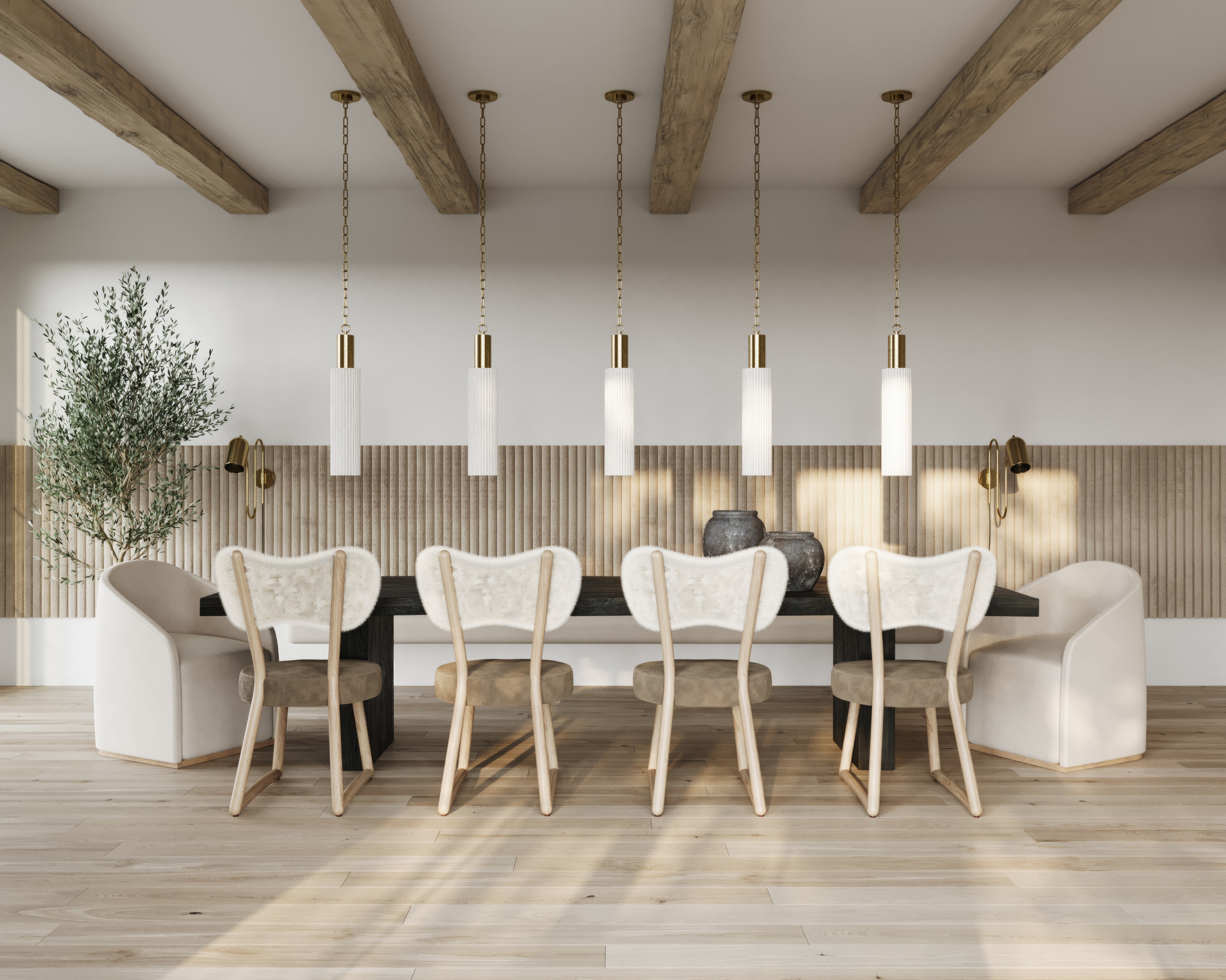 When working with a neutral palette, unique textures and details are a must. For example, while subtle, the fluting in the Corissa family brings the eye on a linear journey that introduces a layer of dimensionality to a space. Whether set against a light neutral backdrop or a color palette of moody, dark tones, Corissa stands out with its elegance and tactility.
