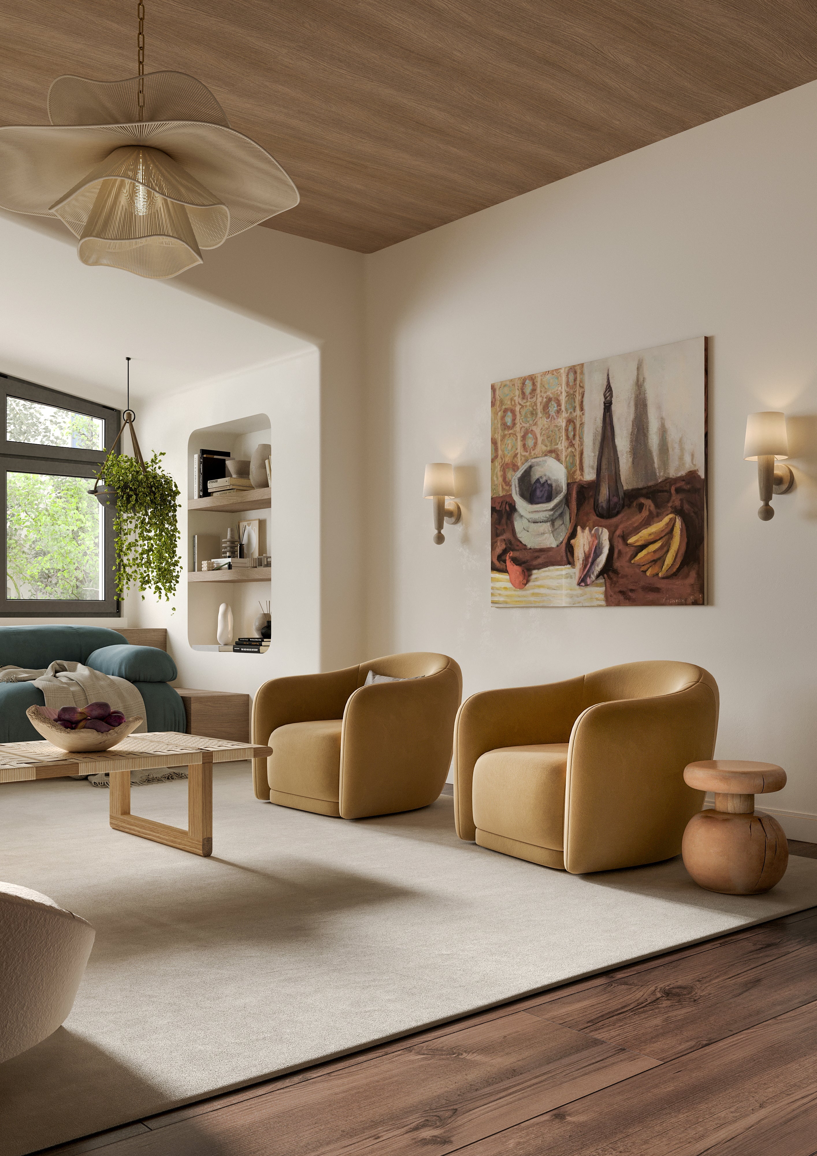 Composed of layered organic, leaf-inspired forms, the Amanda chandelier makes a grand scale visual impact. The four softly undulating cotton-string shades create an implied sense of rhythmic movement. Despite its large size, Amanda is incredibly light and airy, making it a versatile centerpiece for any space.