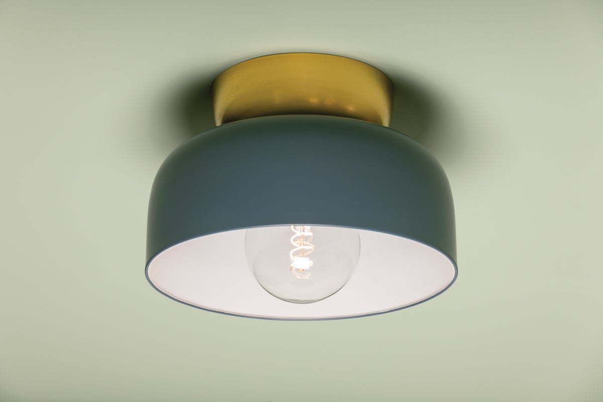 Marrying minimalist design principles and a sense of playfulness, Batya focuses on color blocking to strike a pleasing balance. A companion to Corinne, this lamp features soft Bordeaux and soft blush hues that add a dose of subtle color. Batya is also available as a flush mount in two sizes with a cool Slate Blue shade. Part of our Zoe Feldman collection.