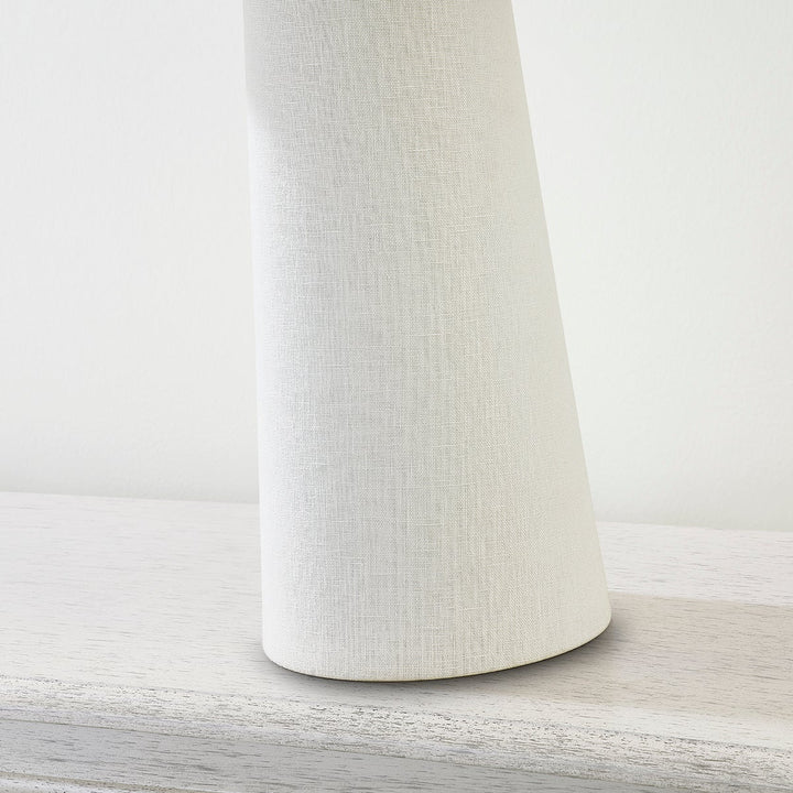 Chanterelle's pleated natural linen shade feels soft and fresh and the undulating edge adds sophistication and movement. The tapered base is also wrapped in natural linen, creating an allover linen materiality and clean monochromatic palette that makes this modern organic table lamp feel right on trend.