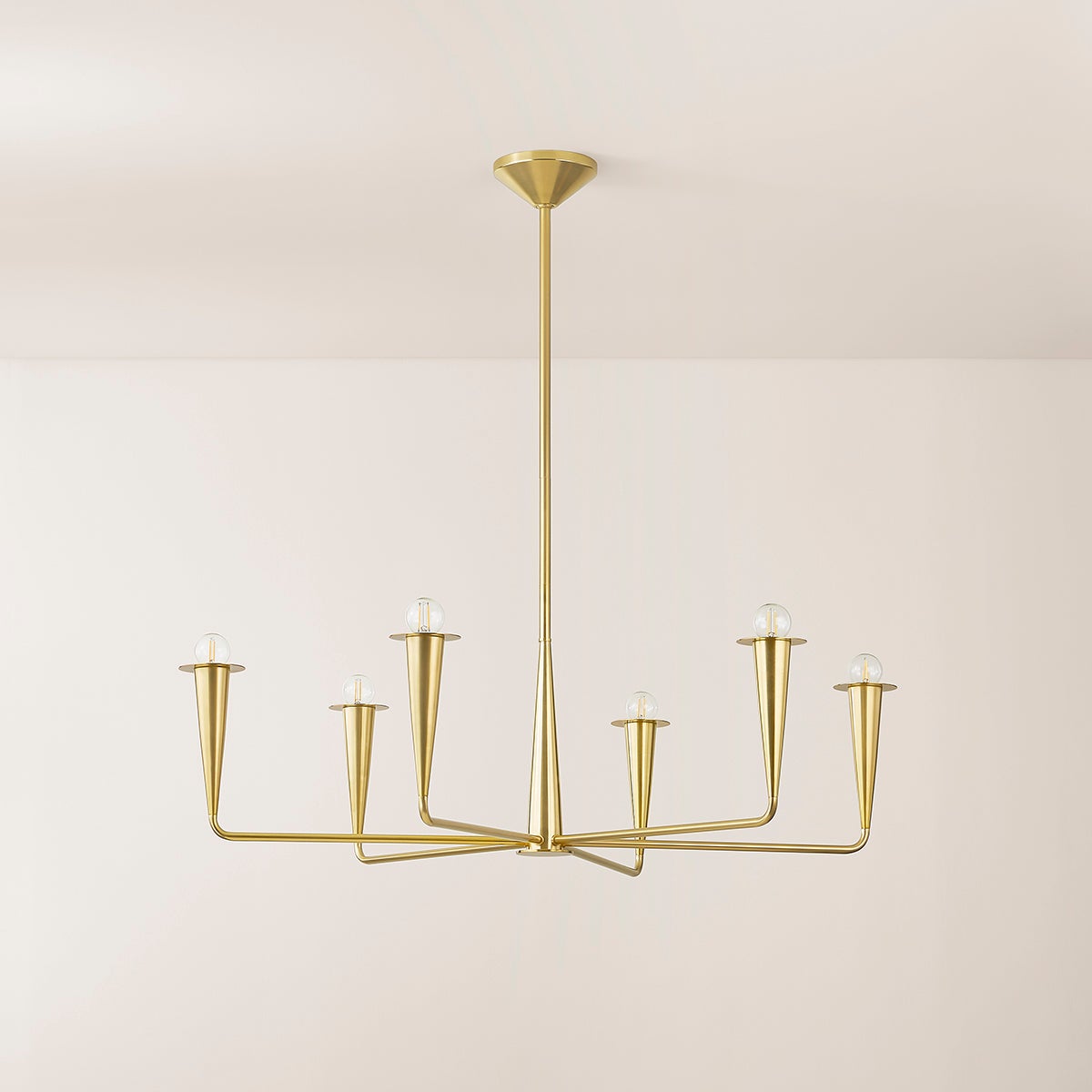 Bring the drama with this botanical-meets-industrial beauty. Slender candlesticks resembling torches support clear glass orbs as they illuminate modern interiors with a sense of retro flair. Available as a sconce or chandelier in two sizes in either an Aged Brass or Old Bronze finish. Part of THELIFESTYLEDCO® collection.