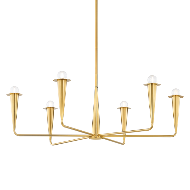 Bring the drama with this botanical-meets-industrial beauty. Slender candlesticks resembling torches support clear glass orbs as they illuminate modern interiors with a sense of retro flair. Available as a sconce or chandelier in two sizes in either an Aged Brass or Old Bronze finish. Part of THELIFESTYLEDCO® collection.