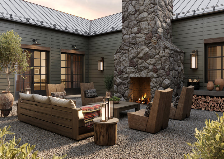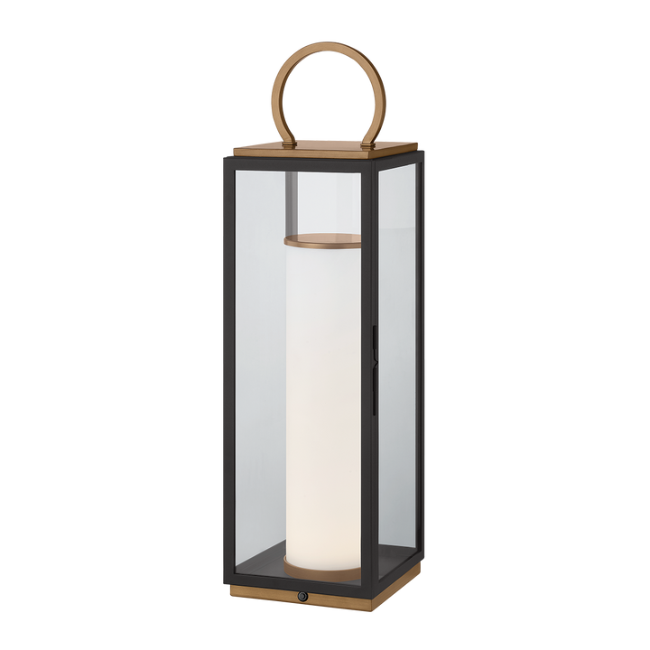 Drawing inspiration from traditional lanterns, this family of sleek exterior fixtures includes sconce and a portable lantern in multiple sizes. Elongated silhouettes and a mixed-finish combination of Textured Black and Patina Brass give these lanterns a contemporary update. While Gareth is equipped with a single chunky pillar candle for a timeless look, the light source is actually a lightweight aluminum puck with LED technology housed the bottom of the glass cylinders. Gareth is available as both a sconce and a portable lantern in multiple sizes. The portable option is rechargeable and includes a convenient handle for easy transport.