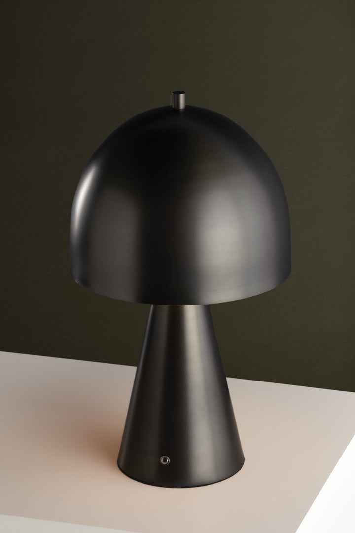 The contrast between the oblong domed shade and the conical base of Hopkinton creates a striking geometric design. Whether this petite accent lamp is finished in Aged Brass or Distressed Bronze, the on-trend mushroom silhouette adds a dose of personality. Its integrated rechargeable LED light source ensures lasting functionality. The battery life of Hopkinton is dependent on the brightness level set by the user, and it recharges in 3.5 hours. This dimmable lamp can also be used while charging.