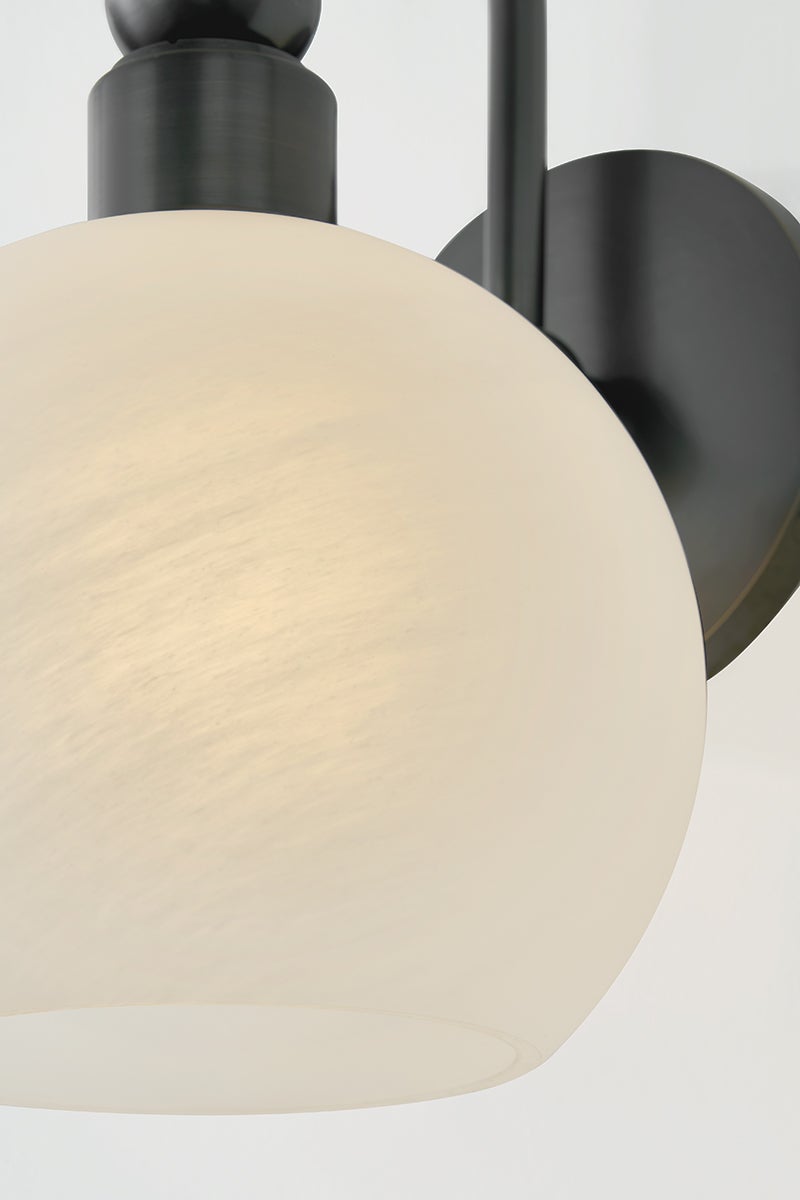There’s a sense of visual ease in the continuity of circular forms in the Jerica bath light. The silhouette is understandable and usable, yet elevated by decorative sphere details, curved lines, and matte cloud glass globes. Choose from a gleaming Aged Brass finish, or opt for Old Bronze for a more modern take. Whether as a sconce or bath bar, Jerica illuminates your daily routines with serene style.