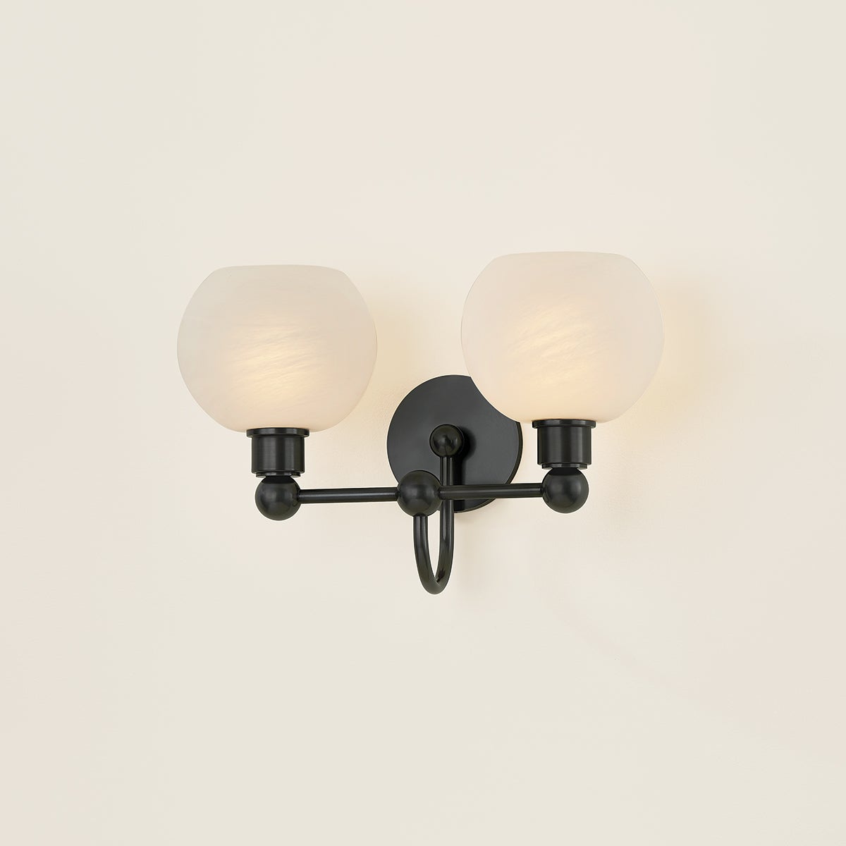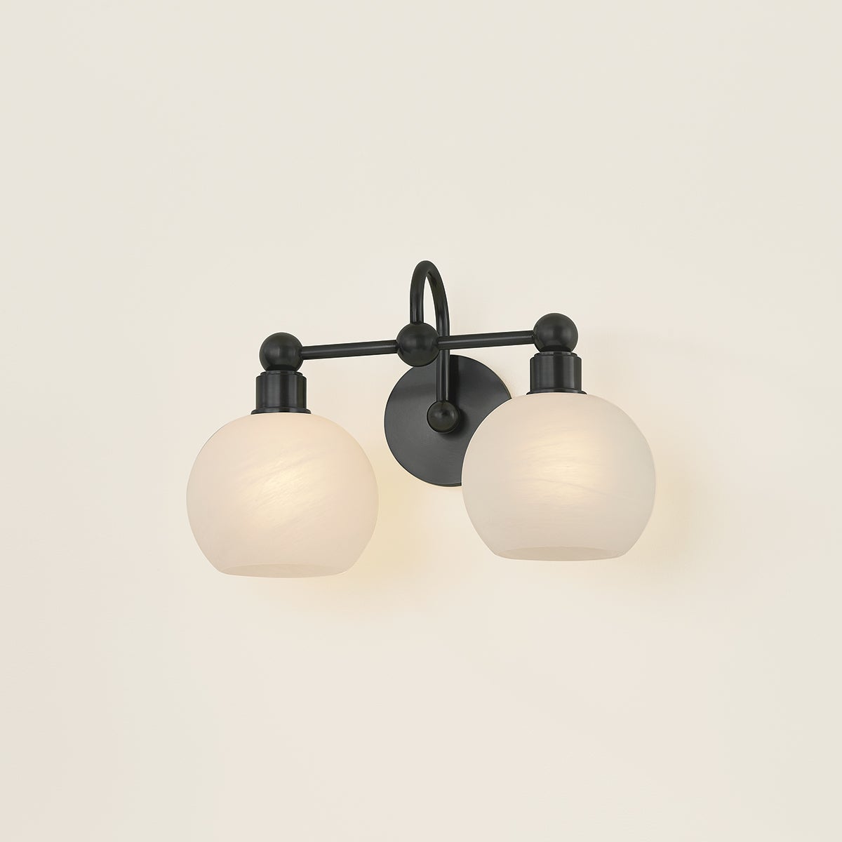 There’s a sense of visual ease in the continuity of circular forms in the Jerica bath light. The silhouette is understandable and usable, yet elevated by decorative sphere details, curved lines, and matte cloud glass globes. Choose from a gleaming Aged Brass finish, or opt for Old Bronze for a more modern take. Whether as a sconce or bath bar, Jerica illuminates your daily routines with serene style.
