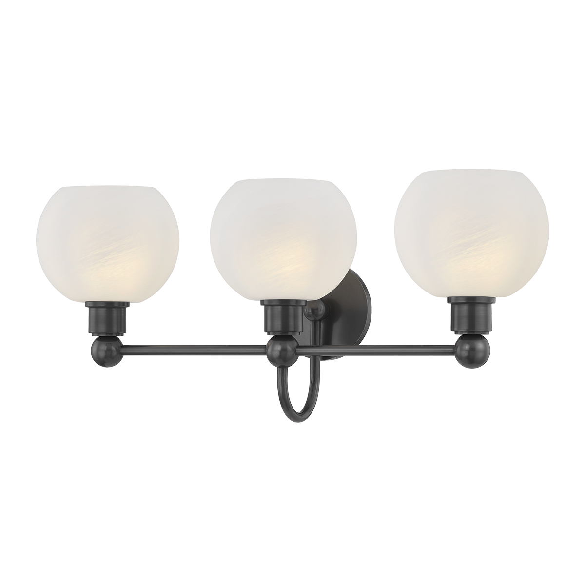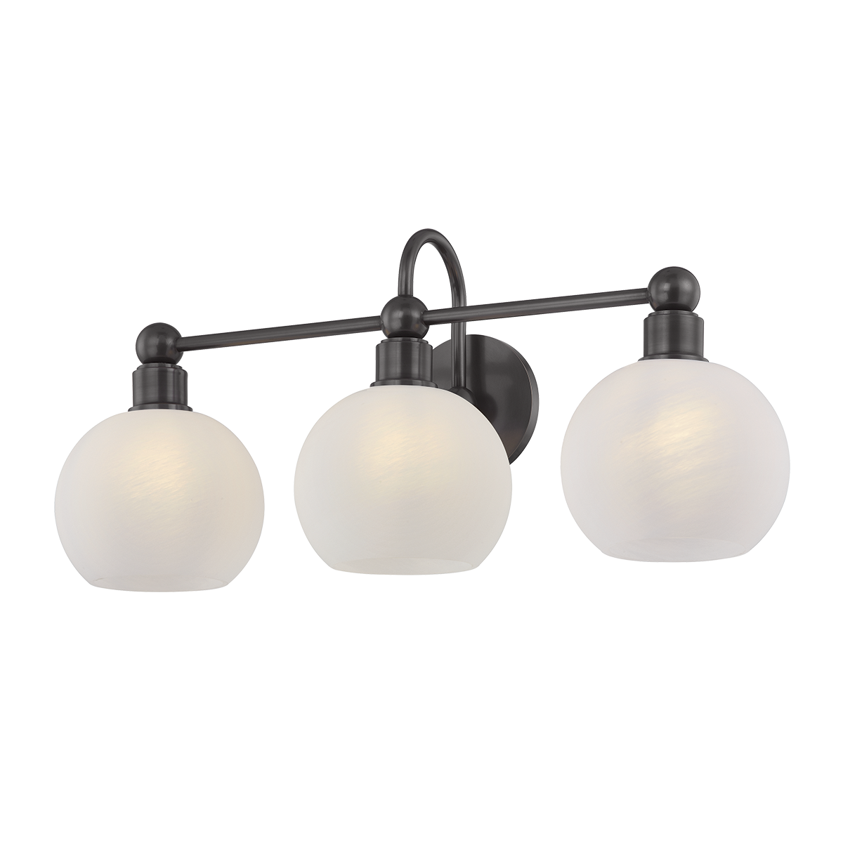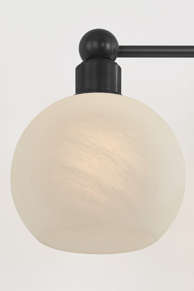 There’s a sense of visual ease in the continuity of circular forms in the Jerica bath light. The silhouette is understandable and usable, yet elevated by decorative sphere details, curved lines, and matte cloud glass globes. Choose from a gleaming Aged Brass finish, or opt for Old Bronze for a more modern take. Whether as a sconce or bath bar, Jerica illuminates your daily routines with serene style.