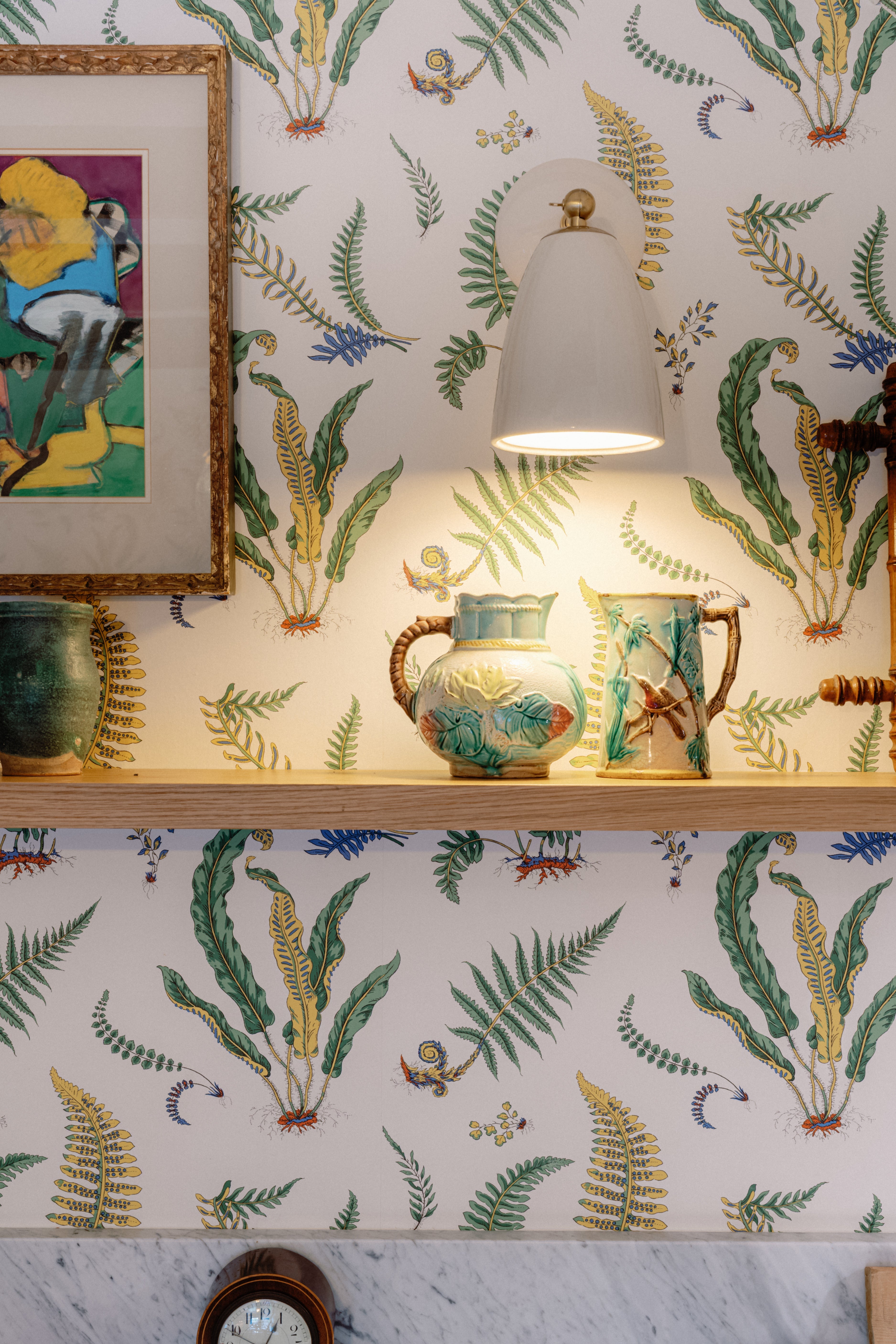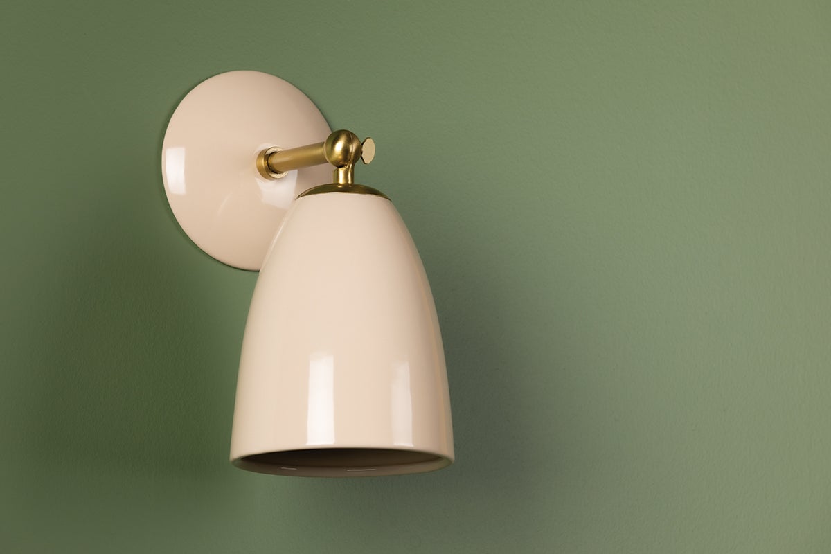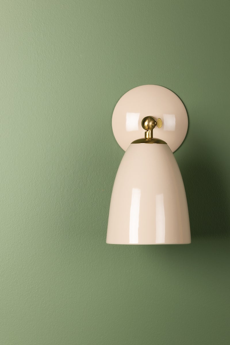 The Kirsten Wall Sconce is a relaxed style with quiet confidence. Instead of traditional glass or metal, the backplate and shade are crafted from ceramic, featuring a glossy cream finish and aged brass accents. The alluring hue will pop against painted walls, creating visual interest in the softest of ways.