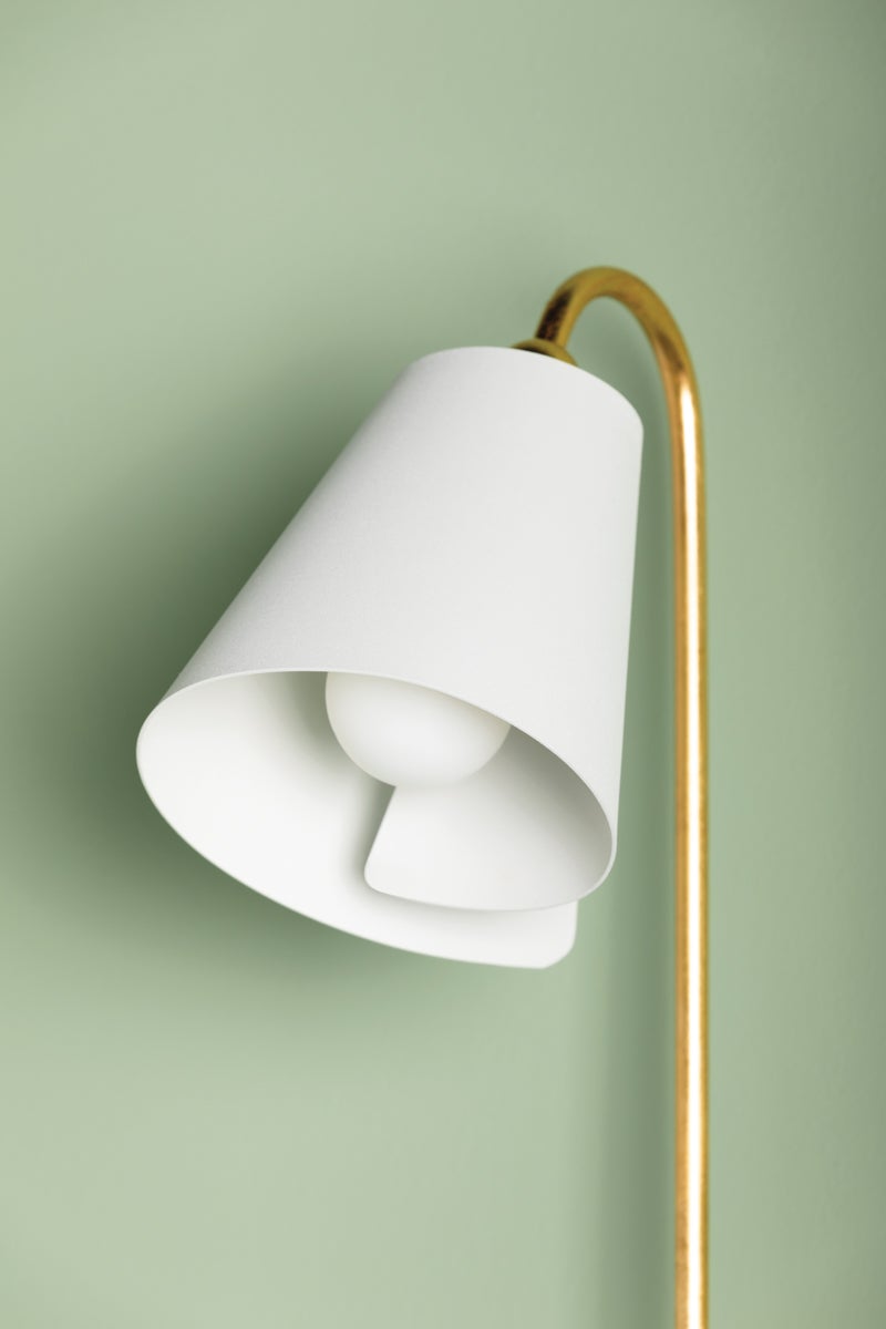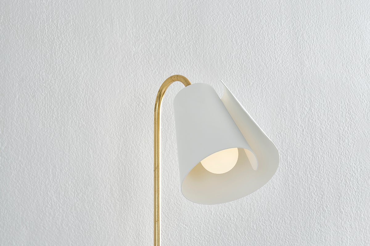 A spray of flower forms elegantly springs from the striking Lila. Reminiscent of a simplified calla lily bud, each bloom is defined by a coiled metal shade in a Textured White finish, supported by Gold Leaf ‘stems. Arranged at varying heights, the arched flowers create a sense of dynamism within the fixture. Available as a chandelier or sconce, Lila is a joyful celebration of curved edges and vintage silhouettes.
