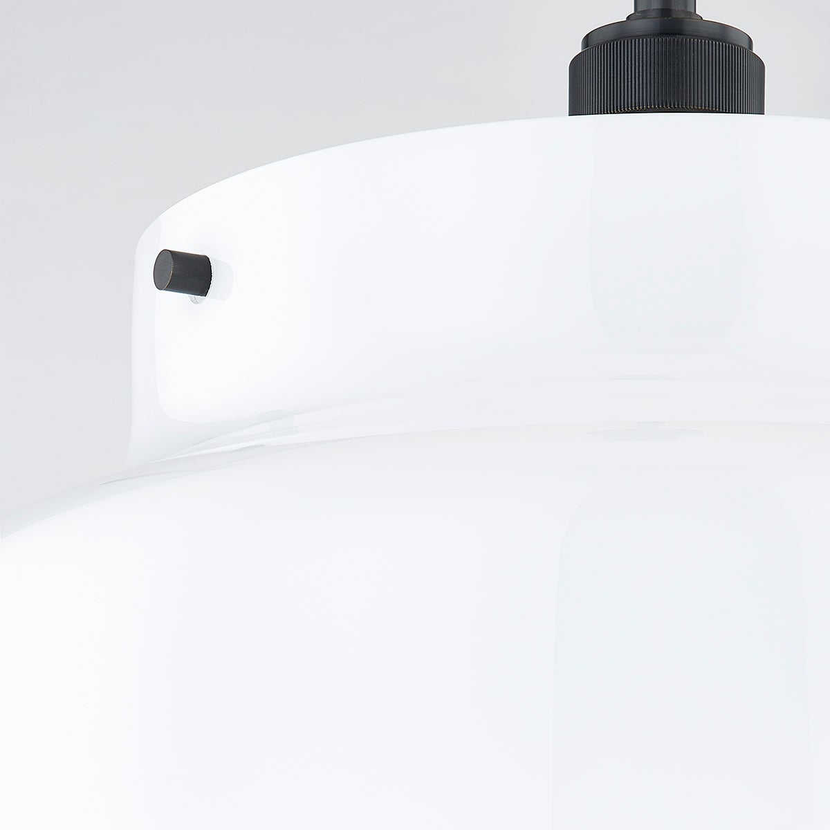 A streamlined opal glossy glass shade is accented with subtle metal details, like the knurling on the socket cup, adding visual interest to this modern pendant's clean, minimal look. A great choice to style in multiples over the kitchen island or solo over a small dining area.