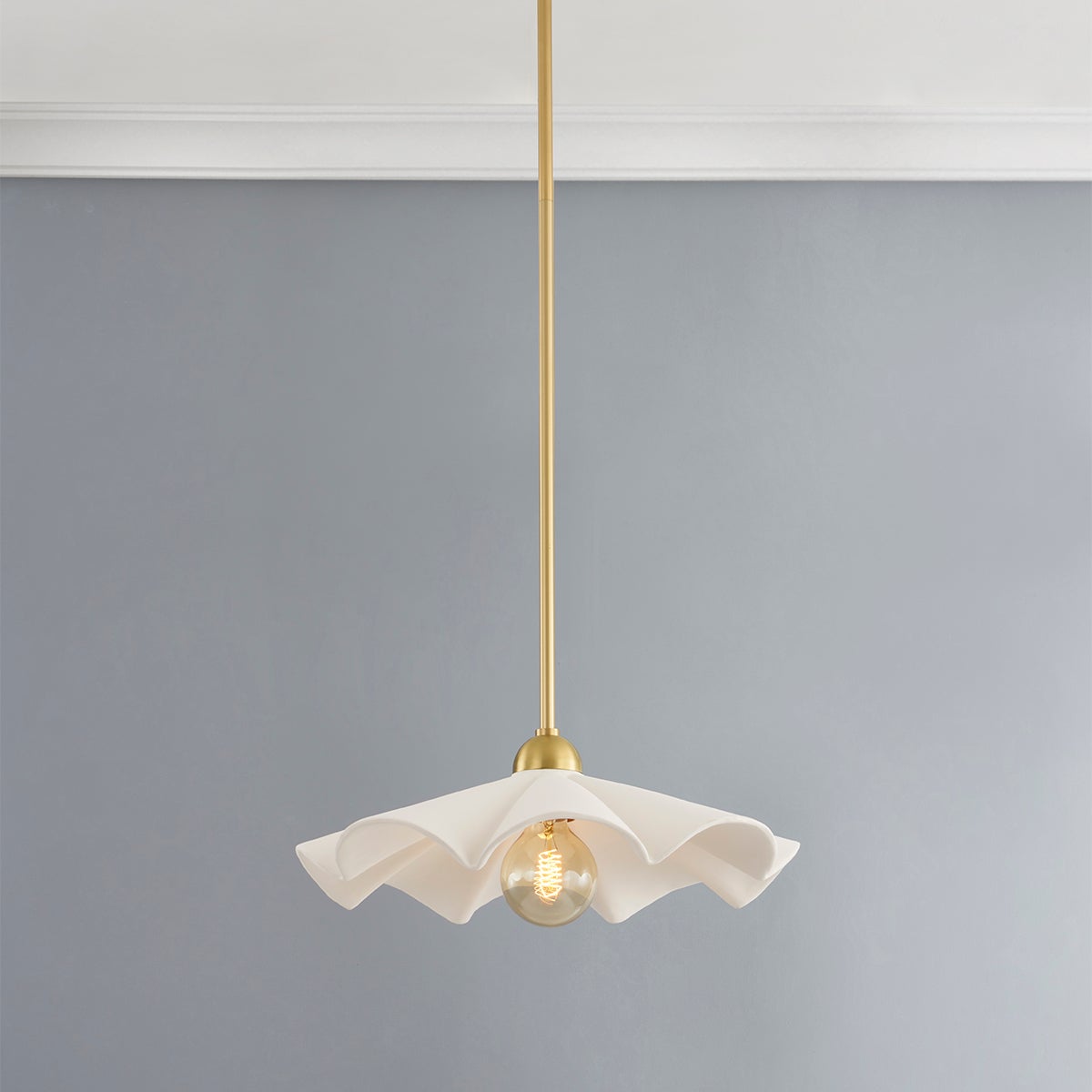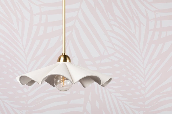 Fashionable and feminine, Maisie’s textured white ceramic ruffles give an organic coastal touch to this wave-inspired design. Create a beautiful yet functional dresser vignette with the table lamp, or add feminine flair to your bathroom vanity with pendants. Want in on a little secret? The pendant doubles as a semi-flush mount! Just remove the stem, and voila! A quick and easy refresh is just a twist away. Part of our Megan Molten x Mitzi Tastemakers collection.