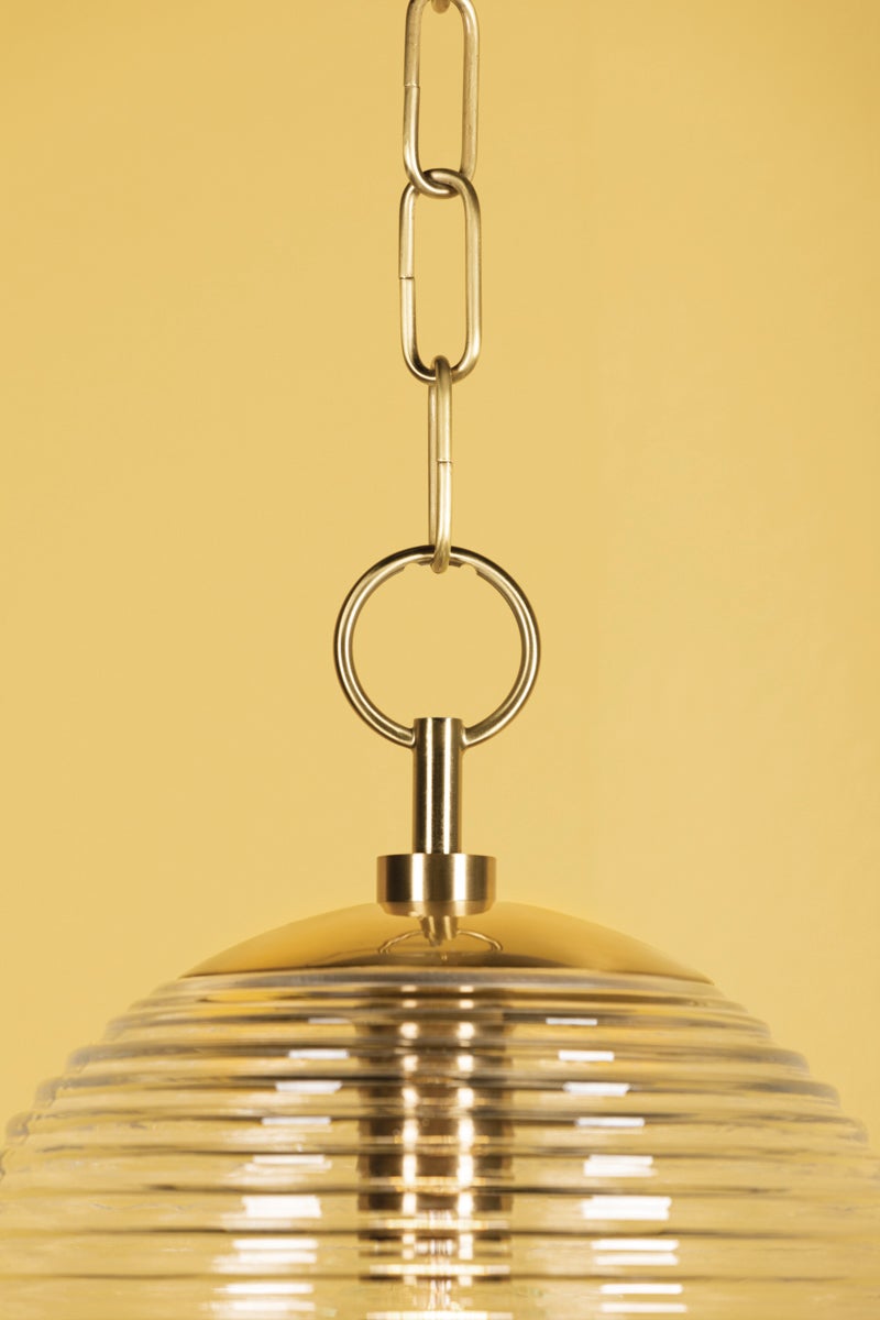 Influenced by vintage Holophane style glass fixtures, Sara gives the classic look a modern update. The clear ribbed glass globes were designed for maximum light and refraction. Available as a flush mount, wall sconce or pendant light, style Sara in multiples down hallways and over kitchen islands or alone above coffee or dining tables to fill a space with bright light and sleek sophistication. The lamp's ribbed ceramic base is similarly influenced and adds texture and a pop of color to any tabletop. Part of our Home Ec. x Mitzi Tastemakers collection.