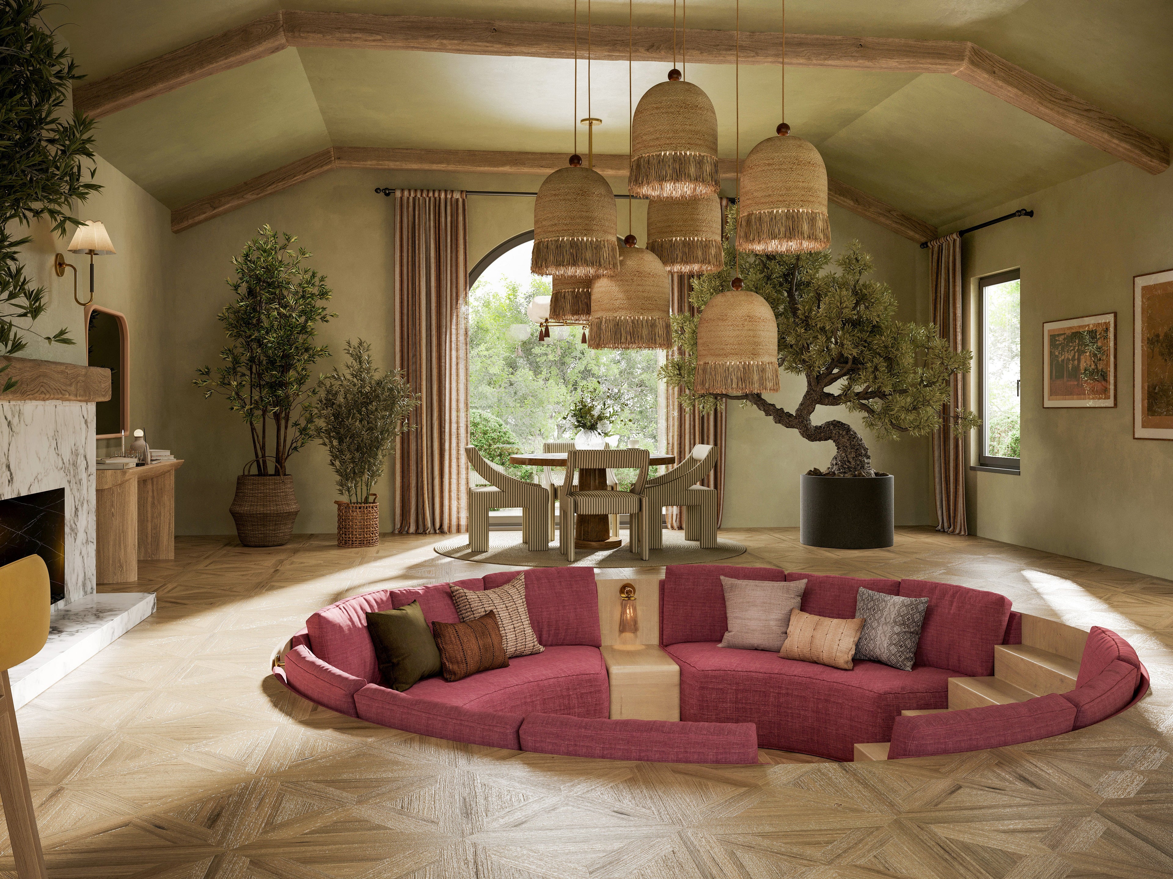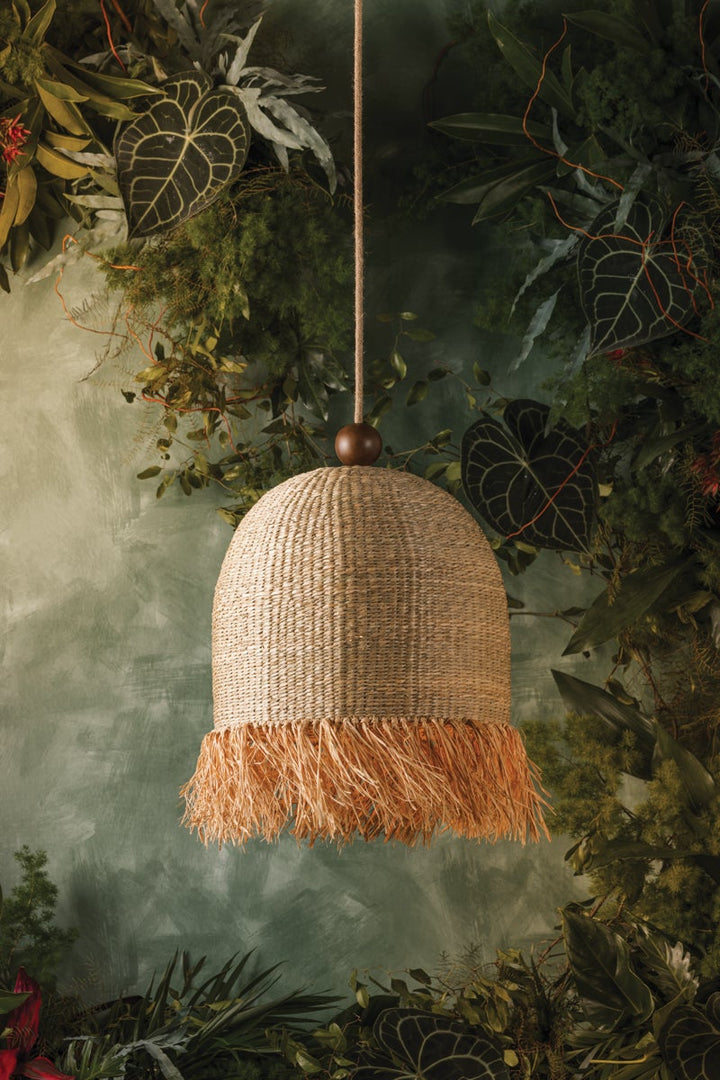 Named after Mandy Cheng’s college roommate, the Sheri family features timeless silhouettes accented by a statement fringe detail. The shade's natural woven fibers serve as a textural focal point evocative of their days spent together in Santa Barbara. Sheri makes a relaxed, playful statement in modern spaces by casting a soft, inviting glow that’s perfect for gathering with friends.